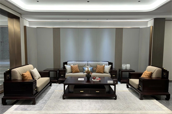 步入國祥紅木打造的家居空間,一張紅酸枝沙發(fā)便足以令人駐足。其創(chuàng)新性的"木石相生"設(shè)計(jì)理念,將寬厚扶手與天然山水紋大理石完美鑲嵌;
