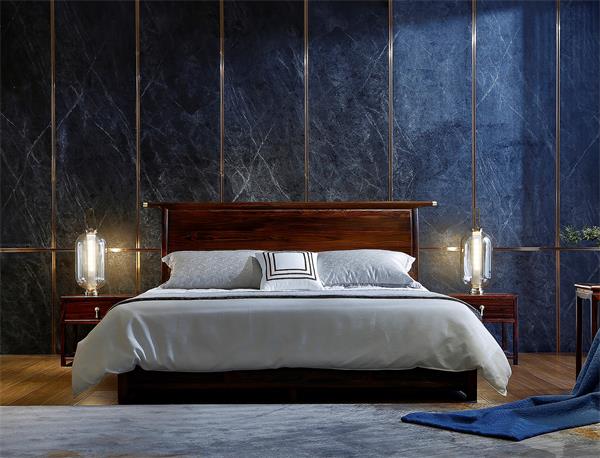 臥室是主人休息的私密空間,東林書院紅木致力于打造一個靜謐、優(yōu)雅的睡眠環(huán)境。整體色調(diào)以靜謐藍為主,營造出私密舒適的氛圍。紅木床具線條優(yōu)美,造型簡約大氣。