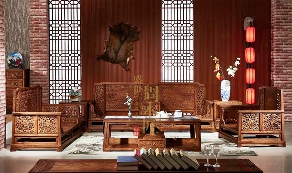 江南沙發(fā)以沉穩(wěn)大氣的姿態(tài),盡顯清式古典風格的雄渾壯美。其通體以精湛的透雕工藝雕琢,無需繁復的雕花堆砌,僅憑借鏤空技法便營造出震撼視覺效果。