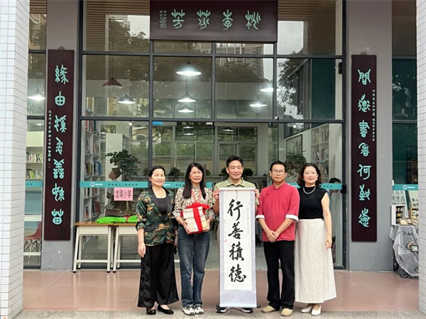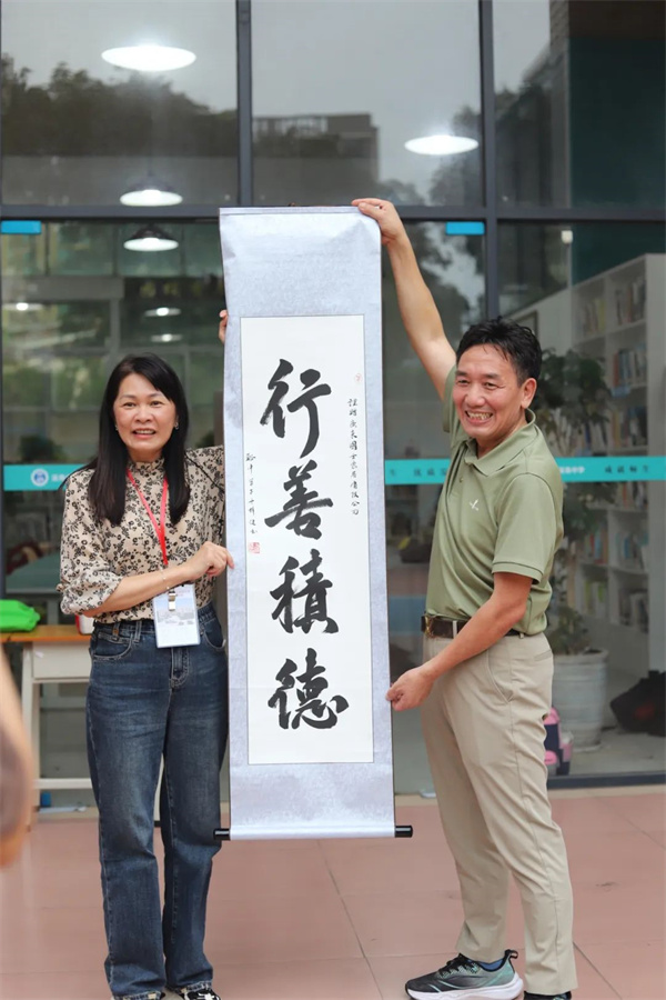 溪角中學對陳新平先生的慷慨捐贈致以誠摯謝意,溪角中學代表回贈學生書寫的字畫,這些字畫飽含著學子們對傳統(tǒng)文化的敬意與向往。企業(yè)以書籍傳遞文化,學校以字畫回饋感恩,雙方共同書寫著文化傳承的動人篇章。