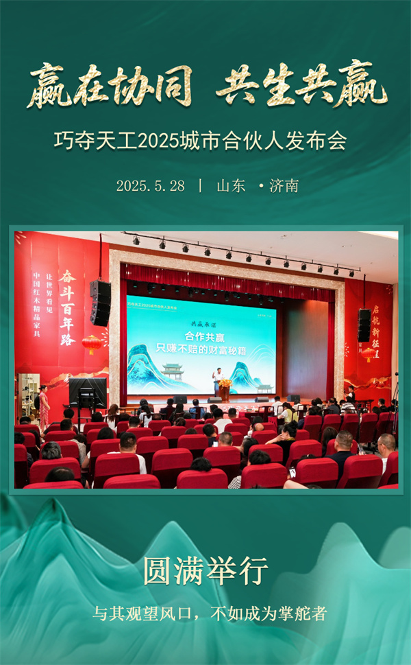 泉城晚春,傳統(tǒng)工藝邂逅現(xiàn)代商業(yè)智慧。5月28日,“巧奪天工2025城市合伙人發(fā)布會”以恢弘之勢在巧奪天工總部隆重啟幕。
