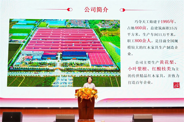緊接著,巧奪天工銷售總監(jiān)姜華美上臺,以“科技賦能·文化鑄魂”為主線,從智能化生產(chǎn)體系、直營模式創(chuàng)新、文化價值賦能三個維度解密品牌護(hù)城河。