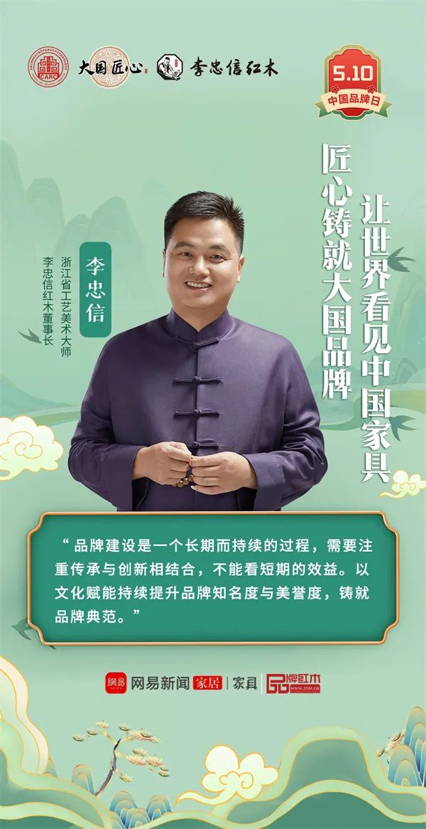 5月10日,第九個(gè)“中國(guó)品牌日”,李忠信紅木以其二十八載的堅(jiān)守與突破,在這場(chǎng)民族品牌振興的史詩(shī)中,成為傳統(tǒng)工藝與現(xiàn)代品牌融合的典范。從一方木作工坊到行業(yè)標(biāo)桿,從東方美學(xué)傳承者到國(guó)際舞臺(tái)的“文化使者”,以匠人之心雕琢?xí)r光,以品牌之力對(duì)話世界,在紅木藝術(shù)的千年脈絡(luò)中刻下屬于當(dāng)代的印記。