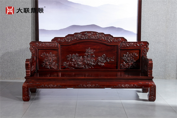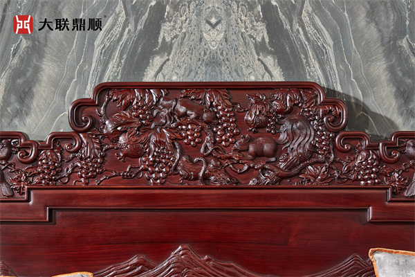 葡萄紋:葡萄藤蔓綿長(zhǎng),果實(shí)累累,是子孫繁衍、家族興旺的經(jīng)典符號(hào)。鼎順紅木尤擅在沙發(fā)搭腦上雕琢葡萄藤蔓,枝葉纏繞間果實(shí)圓潤(rùn)飽滿,寓意人丁興旺、福澤綿長(zhǎng),寄托著對(duì)家族未來(lái)的美好憧憬。
