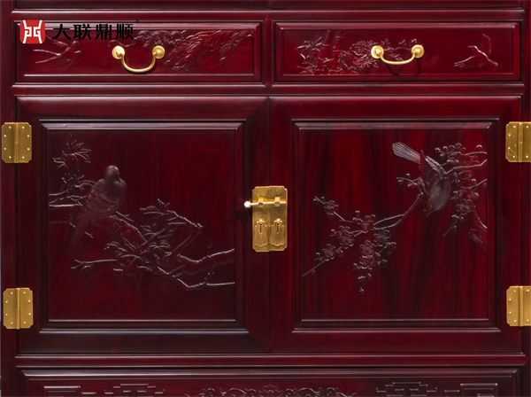 鳥(niǎo)紋:喜鵲報(bào)喜,鴛鴦?dòng)髑?,綬帶鳥(niǎo)象征長(zhǎng)壽,鳳凰代表尊貴與祥瑞。不同鳥(niǎo)類寓意各異。鼎順紅木常精雕鳥(niǎo)雀于花間枝頭,或成雙成對(duì),或顧盼生姿,畫面生機(jī)盎然,為家具注入靈動(dòng)氣息與美好祝福。