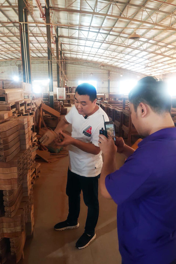 總經(jīng)理吳豐林在直播講解產(chǎn)品選材、工藝特色