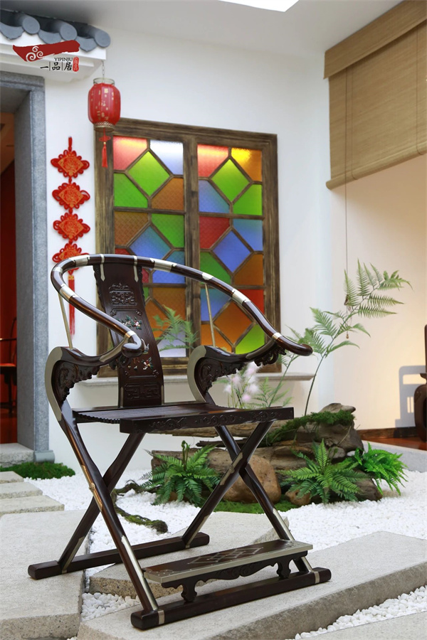 客廳里,交椅是父親專(zhuān)屬的位置。它鑲嵌這百寶,靠背挺拔,扶手圓潤(rùn),象征著父親的權(quán)威。