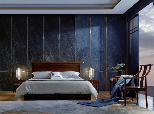東林書院將形制化繁為簡,搭配素雅床品,營造出剛?cè)岵?jì)的休憩空間。闊葉黃檀木質(zhì)紋理在燈光下流淌溫潤,既實(shí)用又充滿藝術(shù)感。