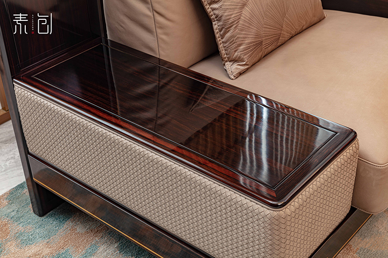 “輕奢”并非浮夸的奢華,而是對品質(zhì)與細(xì)節(jié)的極致追求。素創(chuàng)家居的設(shè)計深諳此道——在烏木家具中融入啞光金屬、大理石等現(xiàn)代材質(zhì),讓空間在厚重與靈動之間找到平衡。這種設(shè)計既符合當(dāng)代都市人的審美需求,又保留了東方文化中“藏而不露”的含蓄之美。