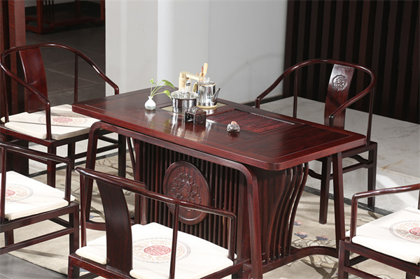 茶香裊裊中,是父子心靈最貼近的時刻。一張柬埔寨黑酸枝茶臺,配以圈椅,成為傳遞親情的絕佳載體。傳世經(jīng)典紅木品牌大成尚品的茶臺采用整板大料制作,既承襲明式家具的簡約風(fēng)骨,又融入符合人體工學(xué)的現(xiàn)代設(shè)計。