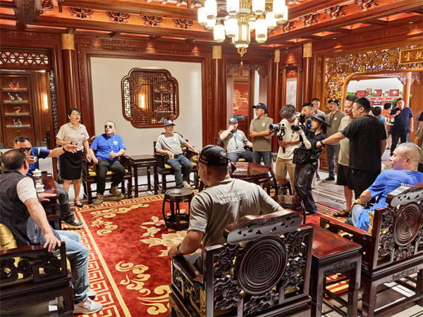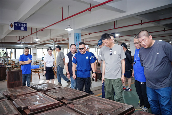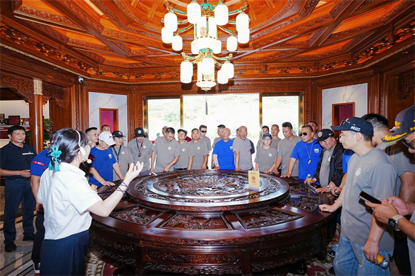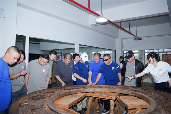 參觀御乾堂的車間,車友們近距離觀摩紅木家具的全流程制作。從原木開料到雕刻打磨,從榫卯組裝到生漆涂裝,每一道工序都展現(xiàn)著御乾堂對傳統(tǒng)工藝的堅守,“沒想到一件家具需要上百道工序,這種極致專注太令人震撼了!” 騎友們不禁感嘆。