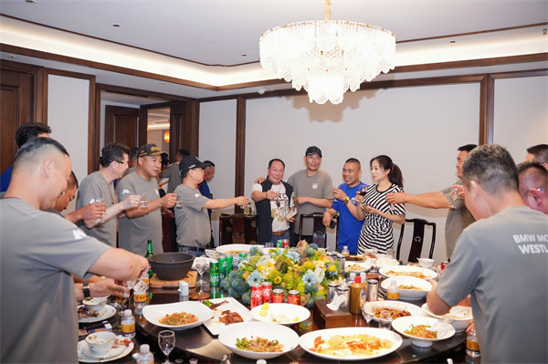 歡迎晚宴在三樓會所華彩啟幕。歡聲笑語、觥籌交錯,馬海軍董事長熱情招待蒞臨的各位西湖寶馬會車友,并在席間雙方就“圈層文化共建”展開深度交流。
