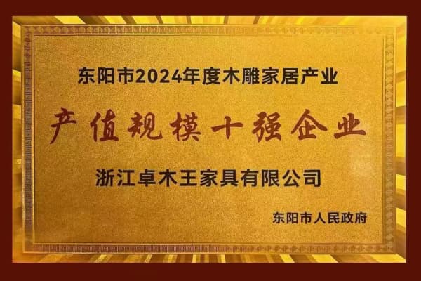 東陽木雕竹編家居產(chǎn)業(yè)已形成1332家企業(yè)、6萬從業(yè)人員的完整產(chǎn)業(yè)鏈生態(tài)。卓木王憑借多年積累的深厚綜合實力脫穎而出,摘得“東陽市2024年度木雕家居產(chǎn)業(yè)產(chǎn)值規(guī)模十強企業(yè)”榮耀。