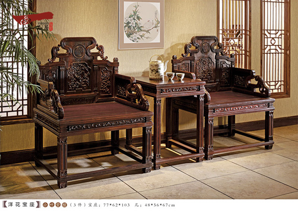 一品居選材以黃花梨、小葉紫檀、大紅酸枝、緬甸花梨等名貴木材為主。