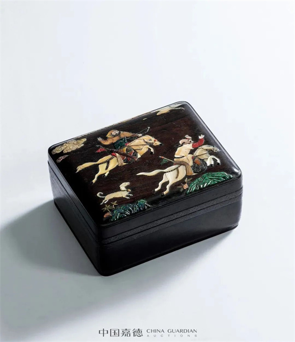 百寶嵌器物因其工藝繁復、用料珍稀而被稱為"奢華的藝術"。在本次拍賣中,一件明晚期紫檀百寶嵌狩獵圖長方盒以356.5萬元成交,彰顯了這類藏品日益提升的市場價值。