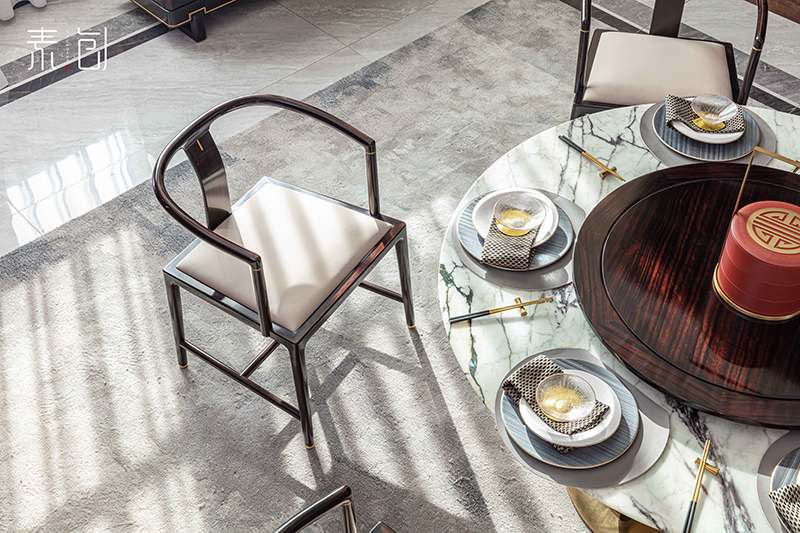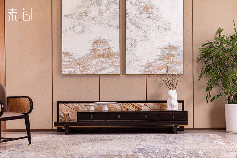 新中式風(fēng)格強(qiáng)調(diào)“簡約而不簡單”,既保留傳統(tǒng)中式家具的典雅,又融入現(xiàn)代設(shè)計(jì)的流暢線條。素創(chuàng)家居在設(shè)計(jì)條紋烏木家具時(shí),注重材質(zhì)的自然美感,通過簡潔的造型突出木材本身的紋理。