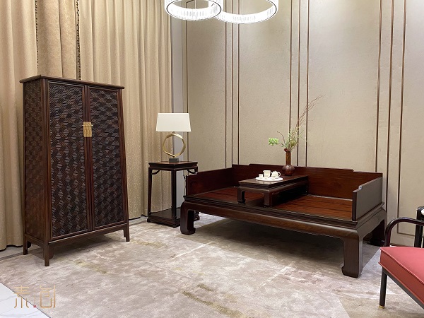 羅漢床與現(xiàn)代沙發(fā)的結(jié)合:在客廳中,大紅酸枝羅漢床可以作為主位沙發(fā),搭配布藝或皮質(zhì)的現(xiàn)代單人椅,既保留了傳統(tǒng)家具的莊重感,又增添了舒適性。夏季可鋪設(shè)涼席或亞麻坐墊,提升實(shí)用性。