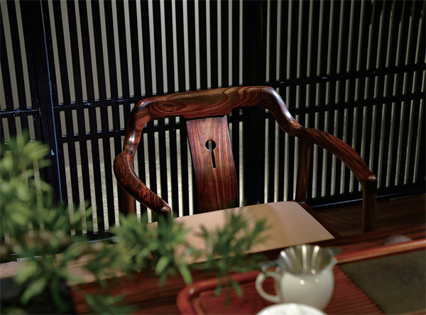 在東林書院的語境中,東方國奢新中式被具象化為一件件以闊葉黃檀為骨的家具作品。闊葉黃檀,這種原產(chǎn)于熱帶地區(qū)的珍貴木材,有著深淺交錯的紋理,如山水畫卷般自然天成,其木質(zhì)堅硬細(xì)膩,經(jīng)過歲月的沉淀會愈發(fā)溫潤,恰如東方美學(xué)中歷久彌新的意境。