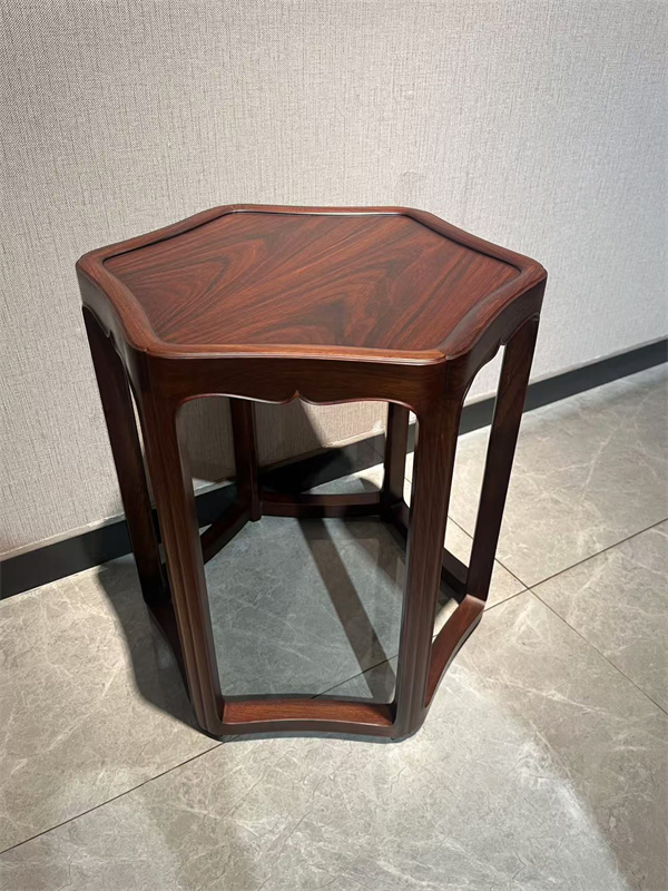 在傳承經(jīng)典的同時(shí),東邦紅木更注重傳統(tǒng)工藝的創(chuàng)新發(fā)展?!读先缫獾省凡捎梦键S檀制作,在傳統(tǒng)凳型基礎(chǔ)上創(chuàng)新融入六角海棠造型,六角六腿的設(shè)計(jì)不僅美觀大方,更蘊(yùn)含著"天地六合,萬(wàn)事如意"的美好寓意。凳面壺門四周精心雕刻的陽(yáng)線流暢自然,邊框的委角處理更增添了層次感,這些細(xì)節(jié)處的創(chuàng)新設(shè)計(jì)讓傳統(tǒng)家具煥發(fā)出新的生命力。