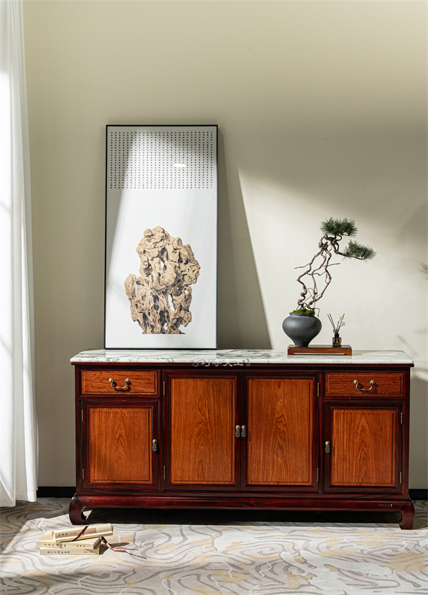 材質與色彩點睛:深色暖調的紅木(如紫檀、花梨、酸枝)最能承載歲月沉淀的溫潤與古雅,其天然紋理亦是自然之美的無言詩篇。