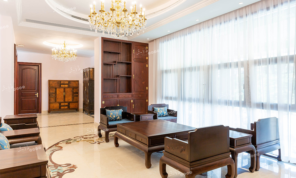 國方家居1989年成立,專業(yè)做紅木家具,有12000㎡展廳、3000㎡樣板間、30000㎡工廠,還有大師工作室。主打黃花梨、紫檀等高端紅木家具,服務(wù)高端酒店、別墅。