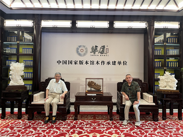 故宮博物院文保科技部原主任曹靜樓與華廈·大不同董事長(zhǎng)陳田華交流后合影留念