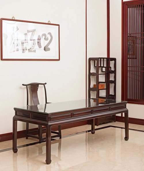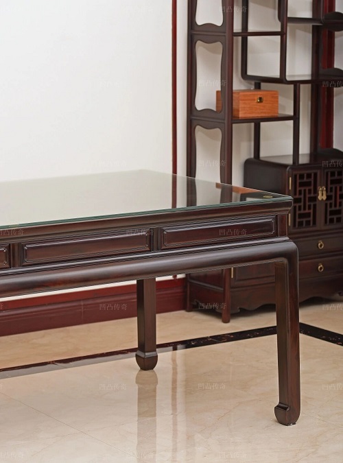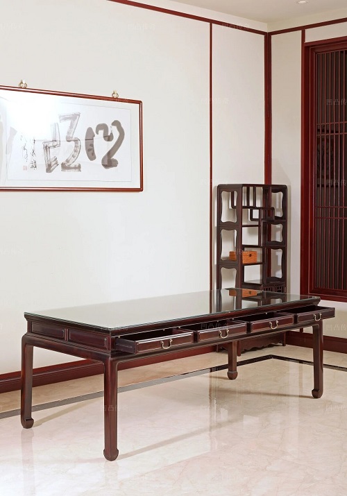 茶桌長度從1.8米至2.5米有多種尺寸可選,適應(yīng)不同空間需求。整板制成的桌面開闊大氣,木紋如流水行云,自然成畫,每一寸紋理都在訴說著樹木的年輪故事。它不僅是茶臺,更可兼作畫案,讓主人在品茗之余揮毫潑墨;也可作為辦公桌接待來賓,在商務(wù)洽談中彰顯品味。