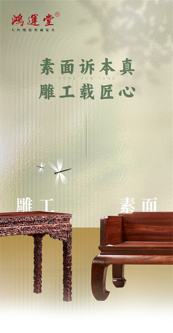 輕撫素面紅木家具,觸到的是木之本真;當(dāng)您凝望雕工紅木家具,遇見的是藝之魂魄。這,便是紅木最動(dòng)人的兩種語言——一種來自自然,一種源于匠心,在鴻運(yùn)堂,皆成傳世之美。