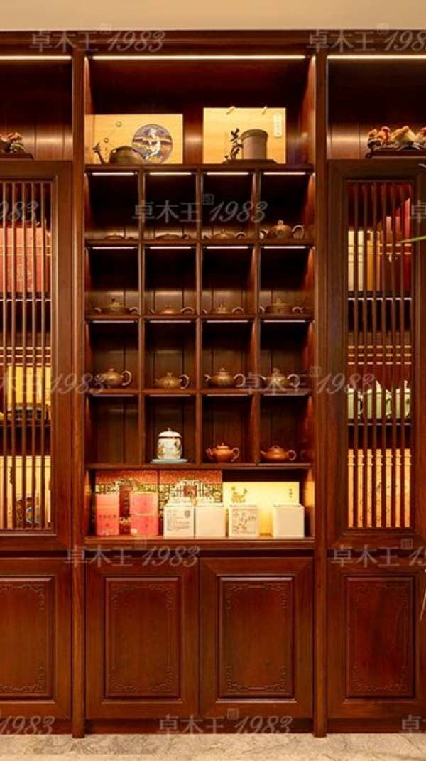 最里側(cè)一馬三箭式多寶柜,收納典籍珍玩,木香與書香交織,營造出沉浸式文人意境。