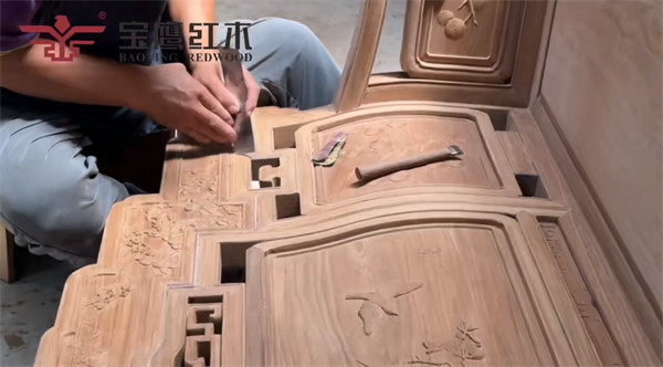 一榫一卯,不含一枚鐵釘,全靠傳統(tǒng)榫卯結(jié)構(gòu)拼合,展現(xiàn)中國(guó)木作智慧的巔峰;一雕一琢,皆手工完成,每處花紋都寓意吉祥,每道刻痕都注入匠心;一漆一磨,反復(fù)數(shù)十遍,使用天然生漆工藝,使木質(zhì)溫潤(rùn)如玉,歷久彌新。正是這種對(duì)細(xì)節(jié)近乎執(zhí)拗的追求,讓家寶紅木每一件作品都成為“可以用的收藏品”。