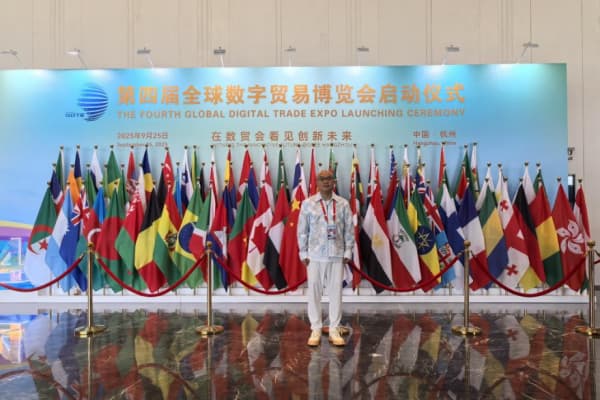 卓木王總裁杜長江與各企業(yè)家在第四屆全球數(shù)字貿(mào)易博覽會合影