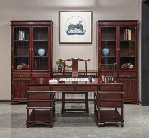 一書案,一博古架,一對官帽椅。書房家具最見木質(zhì)與工藝功底。我們精選密度極高、色澤沉靜的紅酸枝老料,打造出紋理細膩、觸感溫潤的書房空間。在這里,每一寸木紋都散發(fā)著靜心思考的韻味,是涵養(yǎng)心性、傳承文脈的理想之選。
