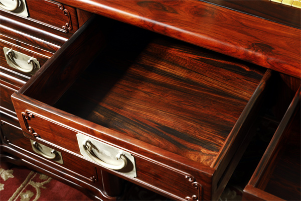 對于真正的紅木鑒賞家而言,選材是品質的第一道門檻。御乾堂對此近乎嚴苛——只精選直徑18厘米以上的交趾黃檀大料,且芯材占比超過95%,從源頭上杜絕白皮混用。這種對用料的極致追求,確保了家具的穩(wěn)定性、耐久性與收藏價值,也讓御乾堂在眾多交趾黃檀廠家中脫穎而出。