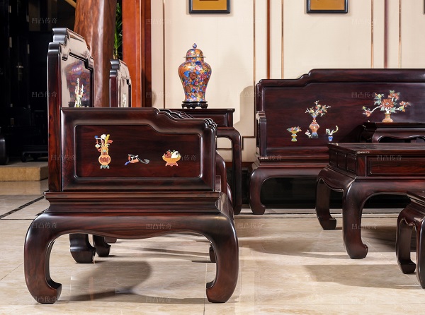[摘要]今天帶大家賞析凹凸傳奇《喜事連連沙發(fā)》,大紅酸枝為骨,百寶嵌為魂,讓每一次落座都成為一場(chǎng)與文化的對(duì)話。
