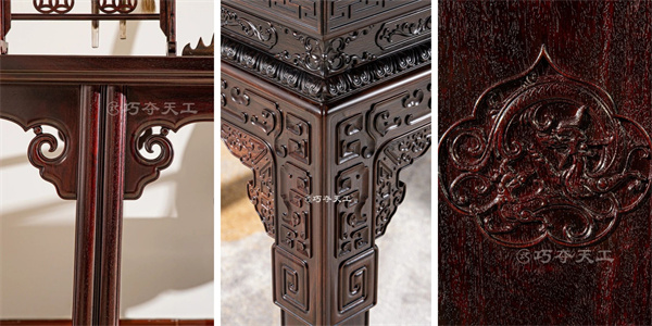 紋樣的敘事,則為這場對話增添了詩意的注腳。巧奪天工家具上雕刻的云紋、回紋、螭龍紋等傳統(tǒng)紋樣,無一不是承載著吉祥寓意的文化符號。這些紋樣跨越時空,將神話傳說、歷史典故、哲學(xué)思想娓娓道來,成為主賓之間心靈相通的媒介。紋樣不僅是裝飾,更是一種無聲的言語,訴說著主人的志趣與期盼。