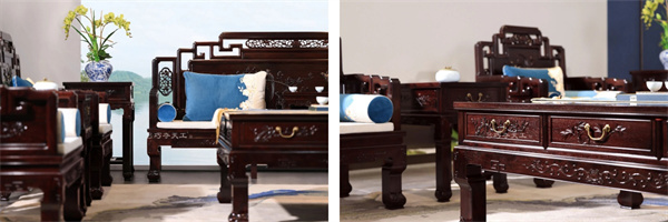 圈合與凝聚,是紅木家具促進(jìn)社交的獨特智慧。“鳥語花香”系列沙發(fā),采用符合人體曲線的微弧設(shè)計,座面與靠背的傾斜度經(jīng)過精密計算,確保圍坐時的視線自然交匯。這種設(shè)計不僅體現(xiàn)了中國傳統(tǒng)“聚氣”理念,更融入了現(xiàn)代社交心理學(xué)的研究成果,讓交流更加自然順暢。