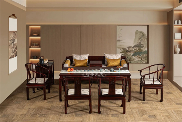 例如茶臺+羅漢床組合強化社交功能,圍坐形態(tài)促進(jìn)面對面交流,破解傳統(tǒng)沙發(fā)間隔疏離;茶道、香道、書畫創(chuàng)作皆可一桌完成,空間成為文化實踐場。靈活多變的設(shè)計思維,讓紅木家具真正融入年輕人的生活,成為他們自己的情感載體,而非父輩審美的簡單復(fù)制。
