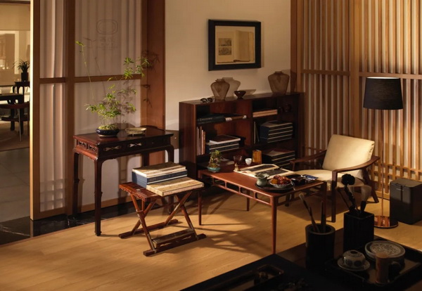 在區(qū)氏家具深圳藝術(shù)生活空間內(nèi),圍繞中國古典家具和現(xiàn)代設(shè)計的融合這一主題,依循清式家具和歐洲古典藝術(shù)、明式家具和現(xiàn)代設(shè)計兩條線索,按照現(xiàn)代人的生活方式,精心布置出了客廳、餐廳、書房、茶室、臥室等十余個生活空間。