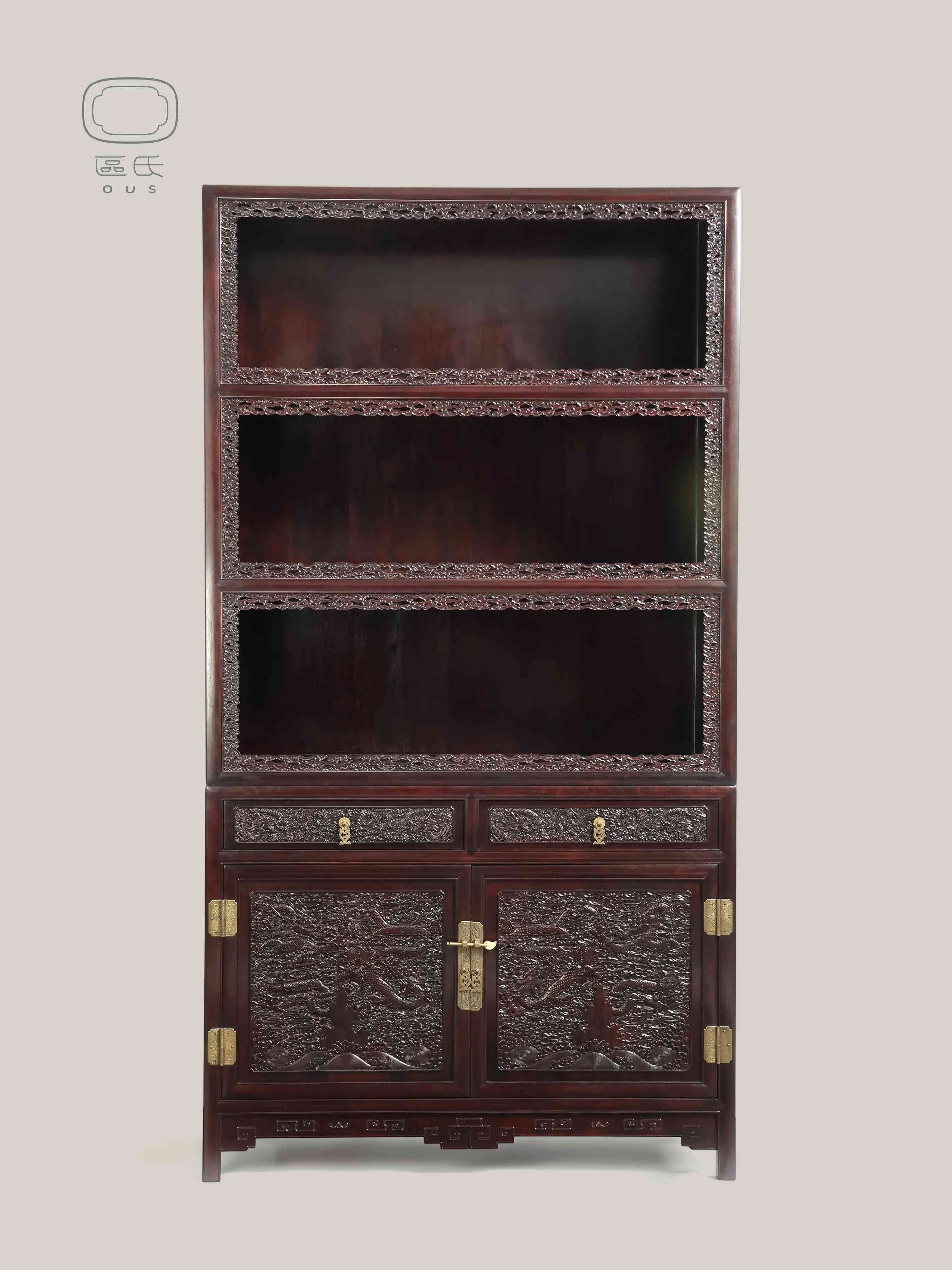 區(qū)氏家具紫檀雕云龍亮格書柜