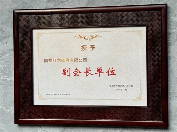 企業(yè)長(zhǎng)期致力于傳承與創(chuàng)新東陽(yáng)木雕技藝,推動(dòng)紅木家居藝術(shù)與現(xiàn)代生活相融合。未來(lái),國(guó)祥紅木將積極履行副會(huì)長(zhǎng)單位職責(zé),加強(qiáng)與行業(yè)伙伴的協(xié)同合作,共同推進(jìn)工藝升級(jí)、品牌建設(shè)與市場(chǎng)拓展,為東陽(yáng)木雕家居產(chǎn)業(yè)繁榮注入新動(dòng)能。
