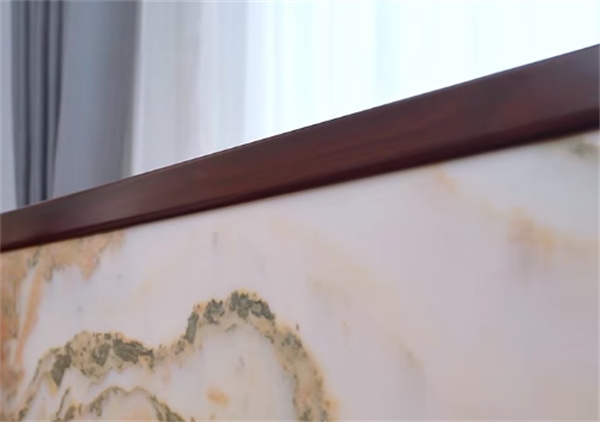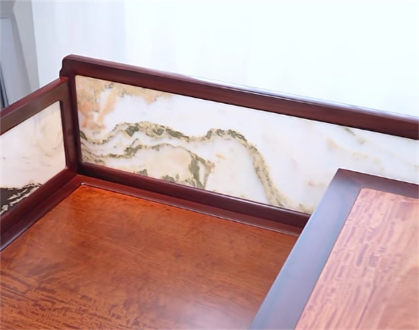 最引人注目的是理石靠背的巧妙融合。天然大理石紋理勾勒出一幅幅獨一無二的水墨山水畫卷,仿佛是宋代畫家筆下的寫意山水,為家具注入了靈動的詩意。這種不同材質(zhì)的對話,不僅突破了傳統(tǒng)紅木家具的設(shè)計邊界,更營造出“山在云間,水在畫中”的意境美。