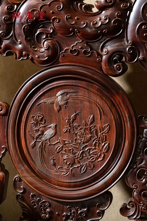 以鴻運(yùn)堂紅木的《四季花鳥如意沙發(fā)》為例,這套13件套沙發(fā)組合展現(xiàn)了收藏級家具的典型特質(zhì)。整體選用老撾大紅酸枝,木材質(zhì)地緊密,色如棗紅,紋理自然流暢。通過“一木一器、紋理相承”的配料原則,保證了各部件色澤統(tǒng)一、木紋連貫,增強(qiáng)了視覺整體性與藝術(shù)完整性。