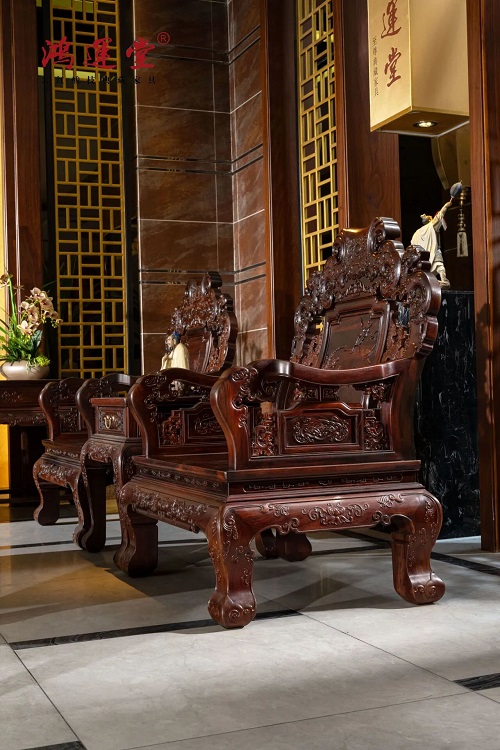 鴻運(yùn)堂紅木作為紅木家具企業(yè),其產(chǎn)品具有收藏價值的原因在于三個方面:一是對原料的嚴(yán)格把控,堅(jiān)持采用老撾原生林大紅酸枝,確保木質(zhì)穩(wěn)定性和稀缺性;二是繼承明清家具制作技藝,結(jié)合現(xiàn)代人體工學(xué),使家具兼具古韻與舒適性;三是注重文化表達(dá),通過雕刻主題與造型設(shè)計(jì),傳遞中國傳統(tǒng)人文精神。例如《四季花鳥如意沙發(fā)》中,腿足造型延續(xù)明式家具的婉轉(zhuǎn)線條,既強(qiáng)化承重功能,又保持視覺輕盈感。