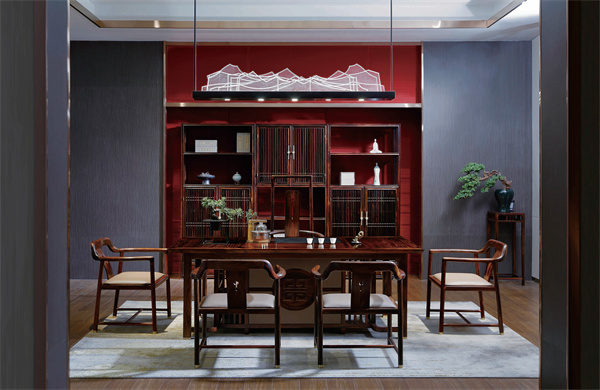 走進現代家居空間,東林書院打造的闊葉黃檀茶臺與茶柜,在茶香與木香中完成著傳統(tǒng)與現代的對話。