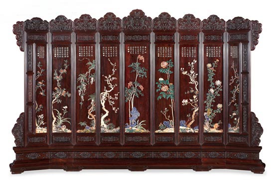 小葉紫檀浮雕云龍紋屛式羅漢床