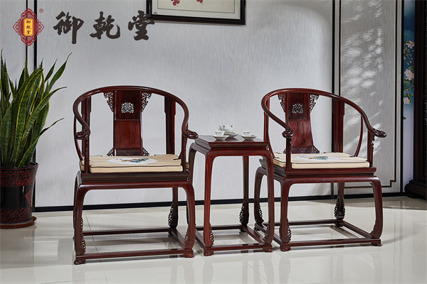 以小葉紫檀皇宮椅為例:椅圈以“三接”或“五接”工藝打造,弧線一氣呵成;靠背板依人體脊椎弧度精心塑形,舒適貼靠;所有榫卯銜接處均做到“肉眼無縫、觸手無痕”。
