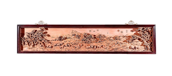 作品以東陽木雕的傳統(tǒng)技術(shù)手法,將草木、山水、馬匹們或臥或立、或嬉戲、或覓食,自由舒閑,聚散不一等各種形象姿態(tài)雕刻的細(xì)致入微,生動立體,栩栩如生。