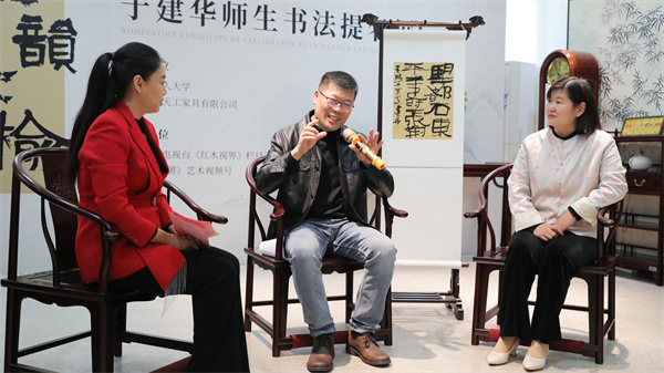 于建華老師分享了自己多年的書法創(chuàng)作心得,他指出:“書法講究結(jié)構(gòu)與氣韻,這與紅木家具的制作理念不謀而合。一幅好的書法作品,筆畫間架結(jié)構(gòu)嚴(yán)謹(jǐn),整體氣韻生動;一件精美的紅木家具,同樣注重結(jié)構(gòu)與韻律之美。二者都是中國傳統(tǒng)文化的重要載體,都體現(xiàn)了中華民族對美的追求和對生活的熱愛。”