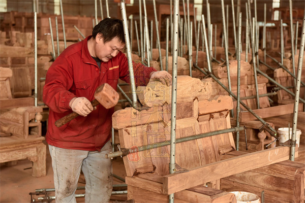 盛世周木匠在傳承傳統(tǒng)工藝的同時(shí),積極引入現(xiàn)代生產(chǎn)技術(shù)。在雕刻技術(shù)上實(shí)現(xiàn)“人機(jī)”協(xié)同作業(yè),現(xiàn)代化機(jī)器提高初雕效率,手工雕刻則精雕細(xì)節(jié),保證藝術(shù)價(jià)值。