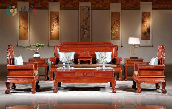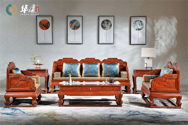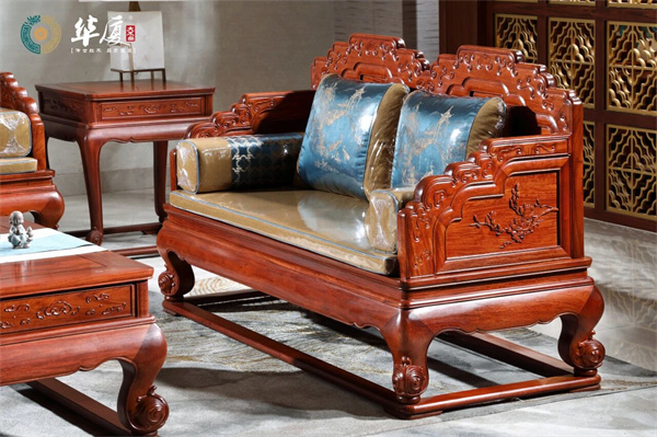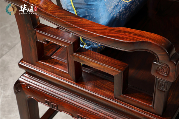 華廈·大不同的緬甸花梨木《步步高升沙發(fā)》,以其溫潤木色與琥珀質感,成為家庭的中心。從扶手至靠背的階梯式設計,寄寓著前程似錦的美好祝愿。